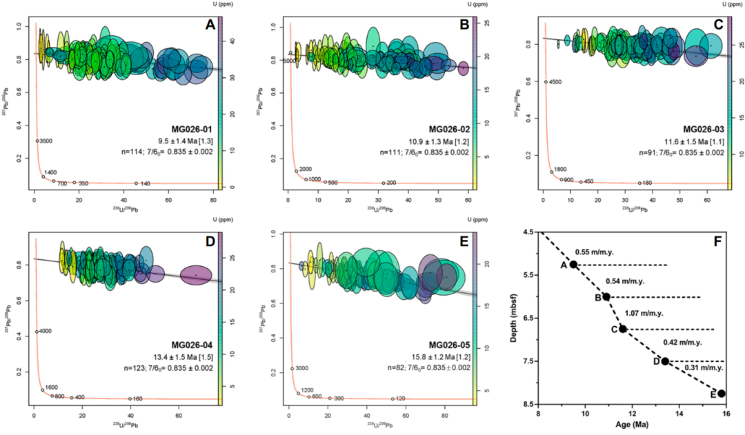 随着绿色技术发展对关键金属的需求持续增长,深海稀土资源的勘探和开发已成为地球科学领域的研究热点。尽管近年来对深海稀土的分布特征与赋存矿物已开展广泛研究,然而,由于缺乏可靠的年龄框架,稀土富集过程与特定地质事件之间的关联难以建立,进而制约了成矿理论的发展。深海富稀土沉积物主要发育于碳酸钙补偿深度以下的远洋盆地中,缺乏可用于定年的钙质生物化石,制约了传统生物地层学等定年方法的运用。前人研究表明,生物磷灰石对U元素和稀土元素具有较高的富集能力,利用LA-ICP-MS开展生物磷灰石U-Pb年代学能够有效揭示稀土富集时代,这为构建富稀土沉积物的年龄框架提供了关键技术支撑。