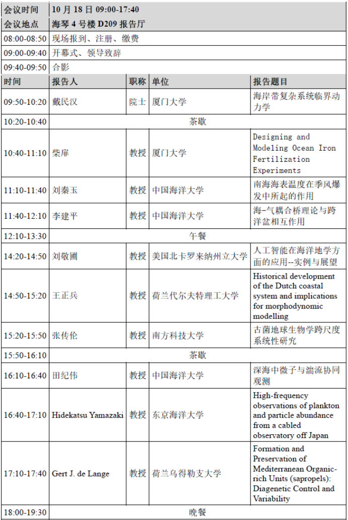 主题七:东南亚边缘海可持续发展国际研讨会(SIMSEA)(召集人:胡湛、杨虎)(专题16)主题八:海洋环境模拟及试验技术(召集人:吕天一)(专题17)