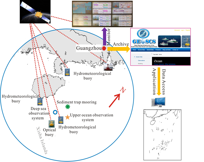 图1 西沙群岛海域及南海北部部分区域水文气象实时观测网络节点分布图