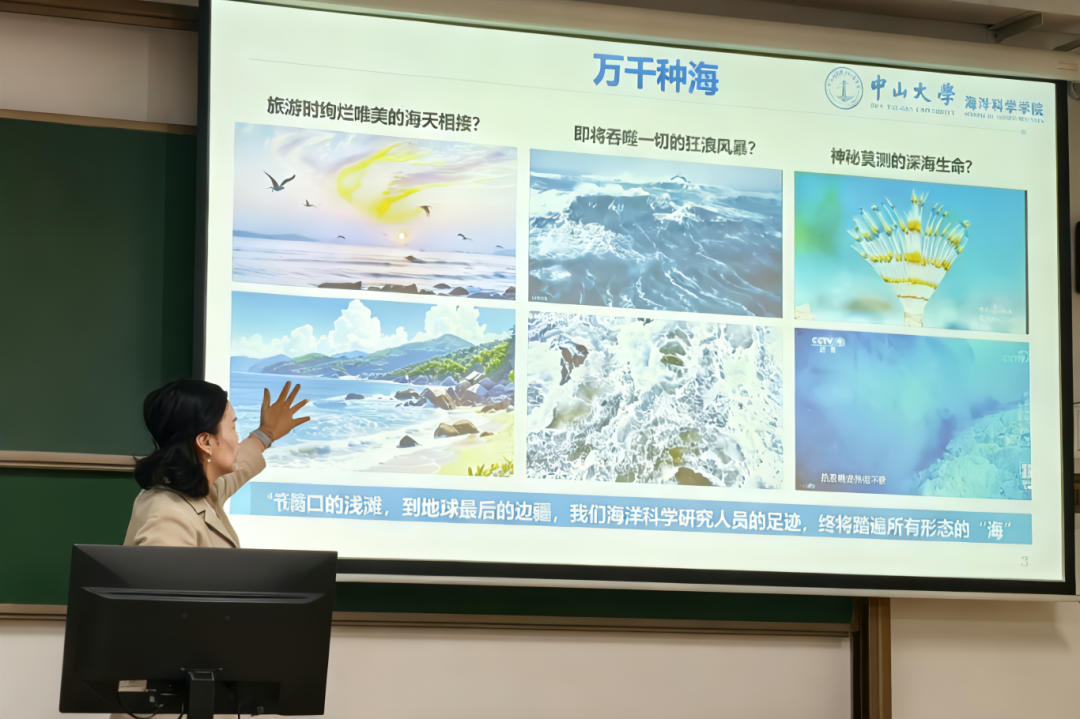 课上,李春荣带领同学们深入学习习近平总书记关于海洋的重要论述。他强调,海洋强国战略是国家新时代关键部署,关乎发展全局,鼓励同学们积极关注并融入国家海洋事业建设。随后,李春荣系统回顾中山大学海洋科学学科及学院的发展历程,分析学院总体目标、学科建设成就及师资队伍体系,深化了同学们对学院的整体认识。为引导同学们明确专业方向与职业规划,李春荣鼓励同学们分享选择海洋科学专业的缘由、学习体会及未来规划。同学们踊跃发言,展现出对专业发展的积极思考与憧憬。