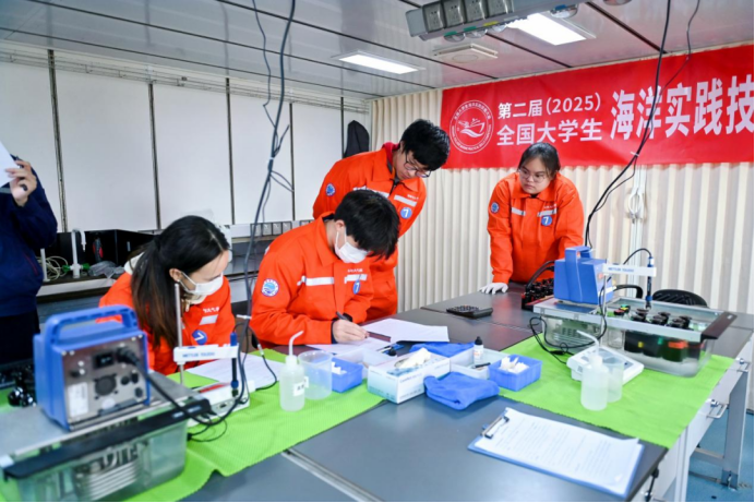 2025年11月28日至11月30日,在教育部高等学校海洋科学类专业教学指导委员会指导下,由海洋学国家级实验教学示范中心(中国海洋大学)、虚拟仿真实验教学创新联盟海洋科学类工作委员会、中国海洋大学船舶中心主办,中国海洋大学海洋与大气学院、中国海洋大学化学化工学院、山东省普通高等学校化学实验教学示范中心(中国海洋大学)、海洋生命科学国家级实验教学示范中心(中国海洋大学)、中国海洋大学海洋地球科学学院协办的第二届(2025)全国大学生海洋实践技能大赛总决赛在山东青岛顺利举行。在本次总决赛中,我院踏浪逐光队(成员:杨思瀚、范怿馨、李林轩、闵哲)从南部赛区16支队伍中脱颖而出,最终荣获团体二等奖。团队由我院林根妹副教授和孟峥实验员指导。