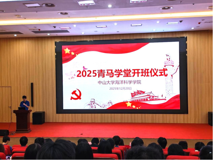 为深入学习贯彻习近平新时代中国特色社会主义思想,推进青年马克思主义者培养工程,强化青年学生政治素养与使命担当,12月20日下午,中山大学海洋科学学院2025-2026学年“青马学堂”开班仪式在海琴三号C507举行。学院党委副书记黄鑫,青年教师专职辅导员周寒、彭娟,团委副书记王科威出席活动,青马学堂全体学员参加。