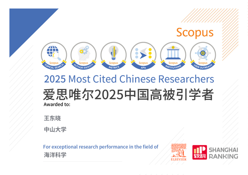 2026年1月30日,爱思唯尔(Elsevier)正式发布2025年“中国高被引学者”(Highly Cited Chinese Researchers)榜单。我院院长王东晓教授、荣休教师袁建平教授在海洋科学领域荣登榜单。其中,王东晓教授自2023年至2025年已连续三年入选该榜单,袁建平教授自2020年起连续六年蝉联此荣誉。