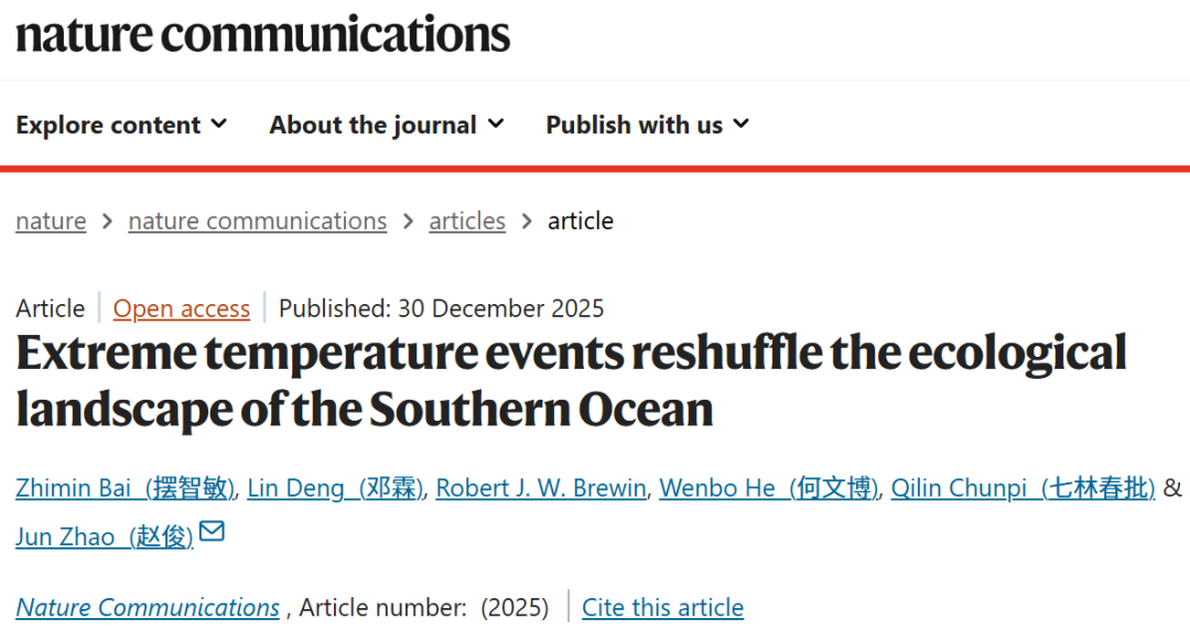 海院科研动态(148)| 我院本科生摆智敏在Nature子刊上发表南大洋极端温度事件及其生态效应研究成果