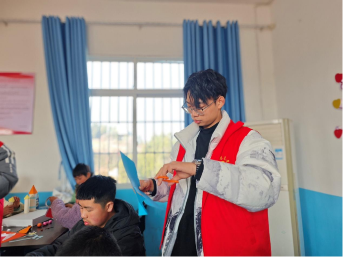 龚祥刚同学参加公益托管班开展志愿服务,参与作业辅导、科普教学与安全保障等工作,协同团队应对突发情况,在实践中彰显青年责任与担当。