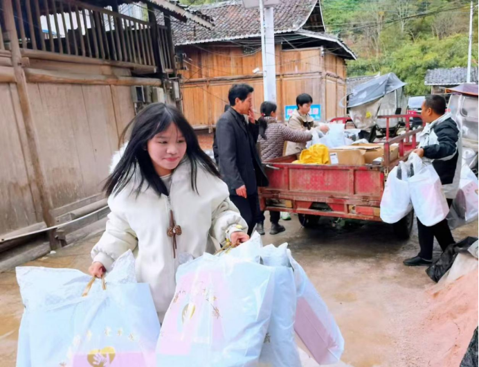 伍凤姣同学于贵州龙额村参与“暖冬关爱”活动,摸排高龄老人信息、发放保暖物资,走进侗寨鼓楼开展交流服务,以青年视角践行敬老助老的责任担当。