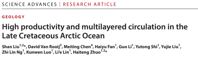 海院科研动态(154) | Science Advances:极热时代的深海绿洲——晚白垩世北极的大洋环流与生态系统