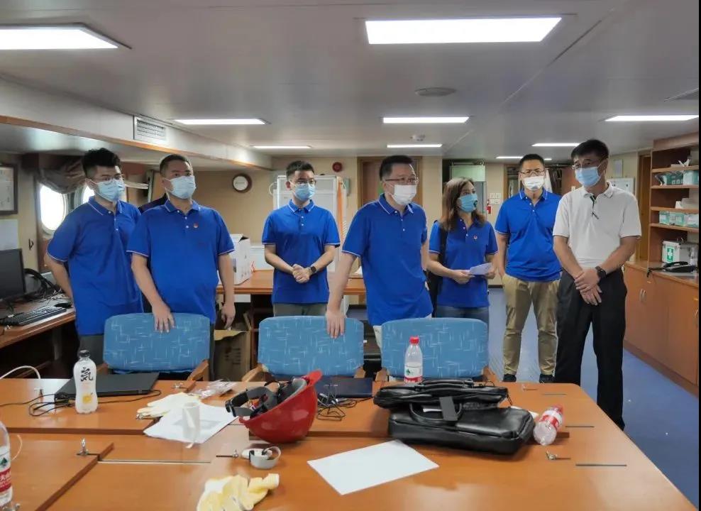 陈大可院士(中)、邰忠智副校长(右一)慰问科考队员与船上工作人员