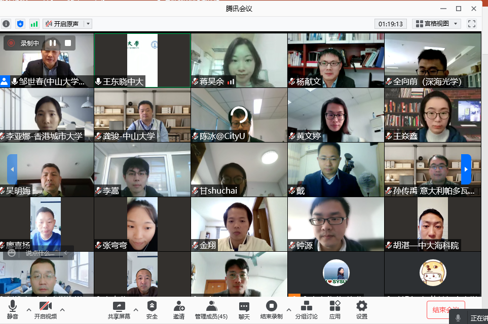 学术报告结束后,学院与会教师打开摄像头与学者进一步交流,他们纷纷表示热切期盼各位青年学者早日加盟学院,扬帆奋进新时代,共筑海洋强国梦。在热烈的交流中,中山大学第十三届国际青年学者论坛海洋科学分论坛顺利结束,期待明年与海内外海洋科学青年学者共襄盛举,续写篇章。