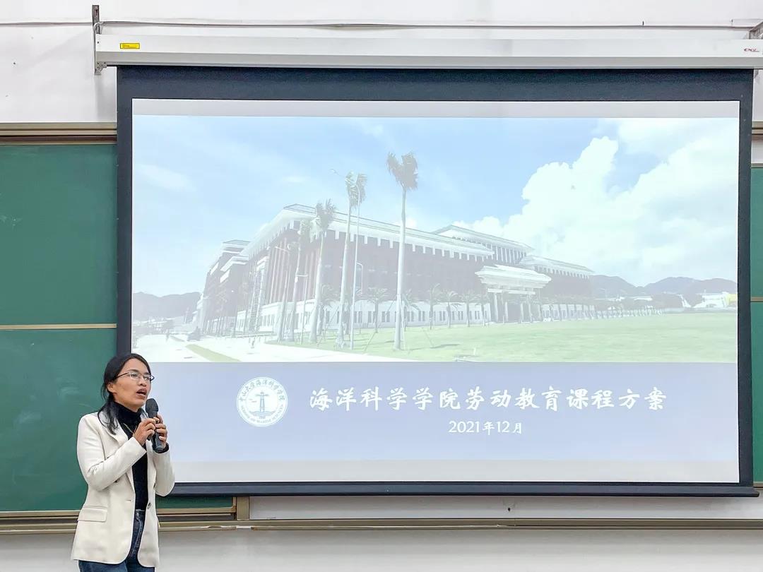 讲座结束后,陈碧双老师、刘欢老师分别向2020级同学和2021级同学介绍了新实施的海洋科学学院劳动教育课程方案。两位老师讲解了课程相关安排和成绩评定。最后,陈碧双老师和刘欢老师表达了对同学们认识到劳动的价值的希望,鼓励同学们自发热爱劳动、积极参与劳动,以劳动创造价值、实现价值。