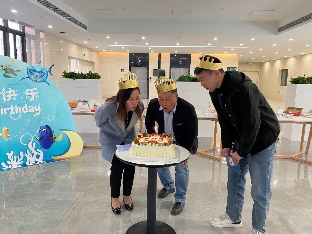 生日会伊始,王东晓院长代表学院致辞,他表达了对生日寿星的祝福以及对生日会活动的肯定。随后,李春荣书记和廖喜扬副书记为寿星们送上生日贺卡和祝福。在欢快的生日歌中,寿星们围绕着生日蛋糕许愿、吹蜡烛。所有在场老师脸上洋溢着笑容,一起品尝蛋糕、分享这一刻的喜悦。