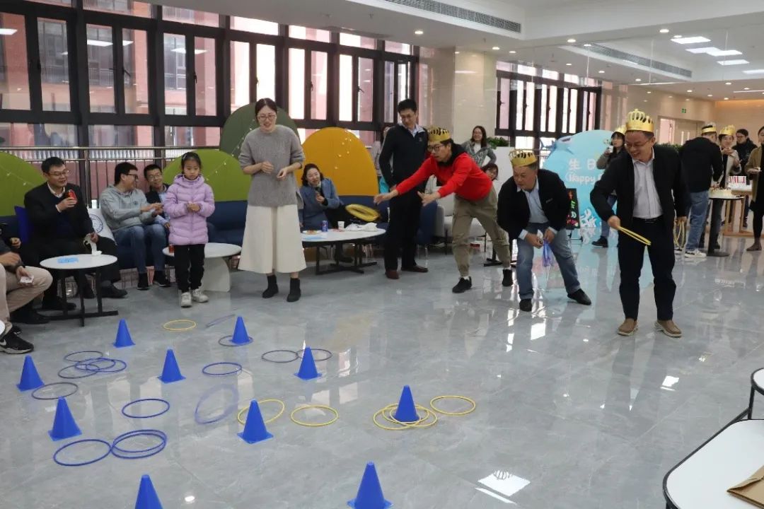 接下来就到了精彩的游戏环节,本次生日会上共准备了两个小游戏——套圈和你划我猜,在场的老师们都跃跃欲试,尽情投入到游戏之中。