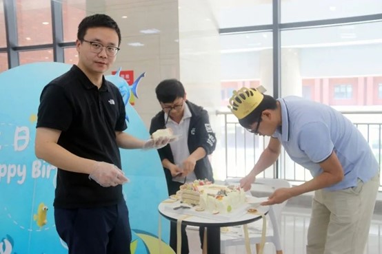 接着,苏明副院长代表学院为寿星们赠送生日贺卡,众老师围绕在生日蛋糕旁齐唱生日歌、吹蜡烛、切蛋糕。活动现场充满了温馨,大家品尝着香甜的蛋糕,共同分享着生日的喜悦。