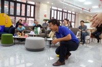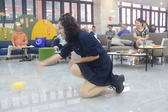 随后便是精彩的游戏互动环节。首先是保龄球小游戏,在场许多老师积极地参与游戏之中。随着几位老师大展身手轻易地将场上的奖品大礼收入囊中,现场气氛活跃到了高潮。