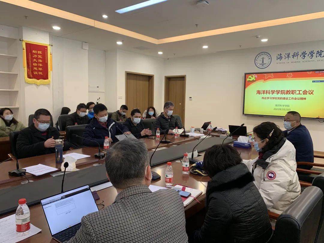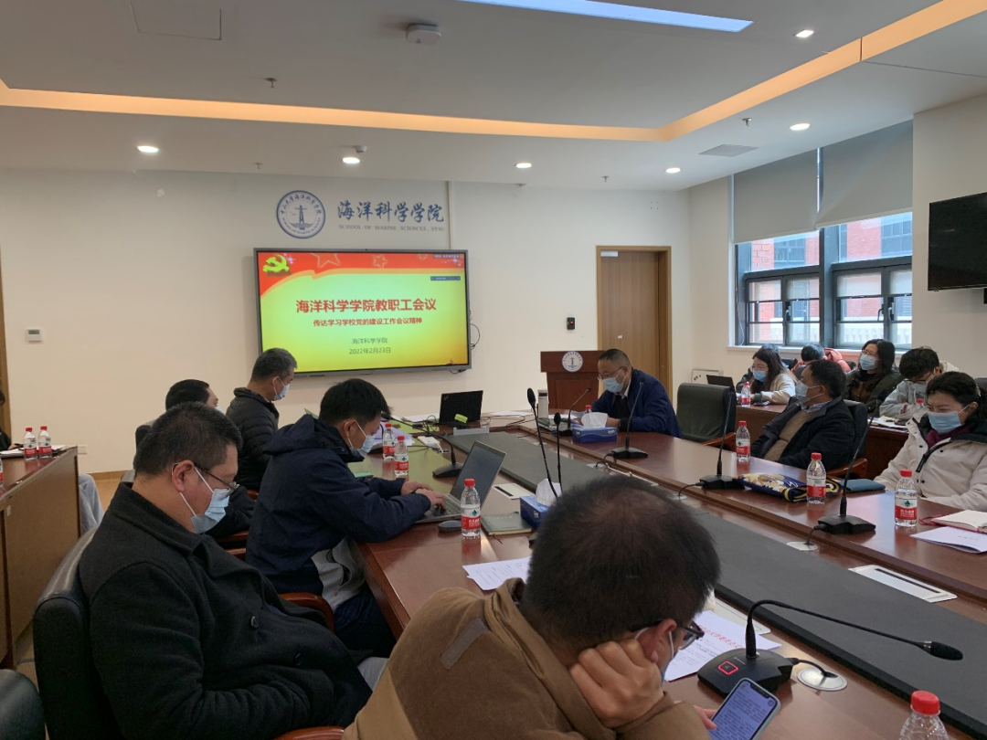 2月23日下午,海洋科学学院召开教职工大会传达学习学校党的建设工作会议精神,部署年度重点工作并强调新学期工作要点。按照学校疫情防控相关要求,会议采用线下会议与网络视频会议相结合的形式召开,学院全体教职工参加会议,会议由学院党委李春荣书记主持。