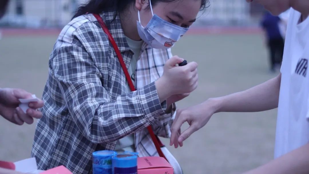 入场前,同学们到前台签到,在手背盖印活动荧光章,投入抽奖条。每位同学均可获得拍立得照片留念,现场井然有序,仪式感满满。