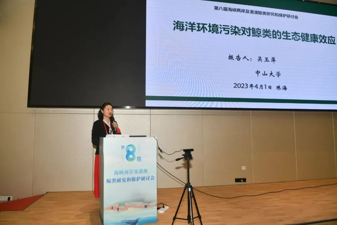 中山大学海洋科学学院吴玉萍教授作《海洋环境污染对鲸类的生态健康效应》特邀报告