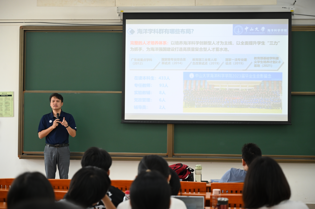 基于上述背景,赵老师介绍了海洋学科群的布局。中山大学海洋科学学院学科齐全,不论是课程开设、师资团队,还是科研平台、科考船队,都在全国名列前茅。同学们身为中大海科人的自豪感油然而生。