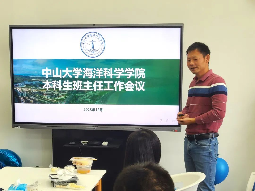 廖喜扬副书记介绍学院近期学生工作的整体情况,并结合学校班主任管理办法、优良学风班建设要求以及学院人才培养工作主线,解读班主任在学风建设、班级建设、思想引领、行为规范、学业发展等方面的工作职责。廖喜扬还强调,在考试前后要多关心学生心理状况,对学业困难的同学给予指导和建议。本科生辅导员陈哲正介绍了2023届本科毕业生升学深造和就业落实情况、大四学生升学就业意向统计以及各年级整体学业情况。工作交流环节,班主任们围绕学生日常管理、学业指导、班级建设和班主任活动等方面进行分享和讨论。