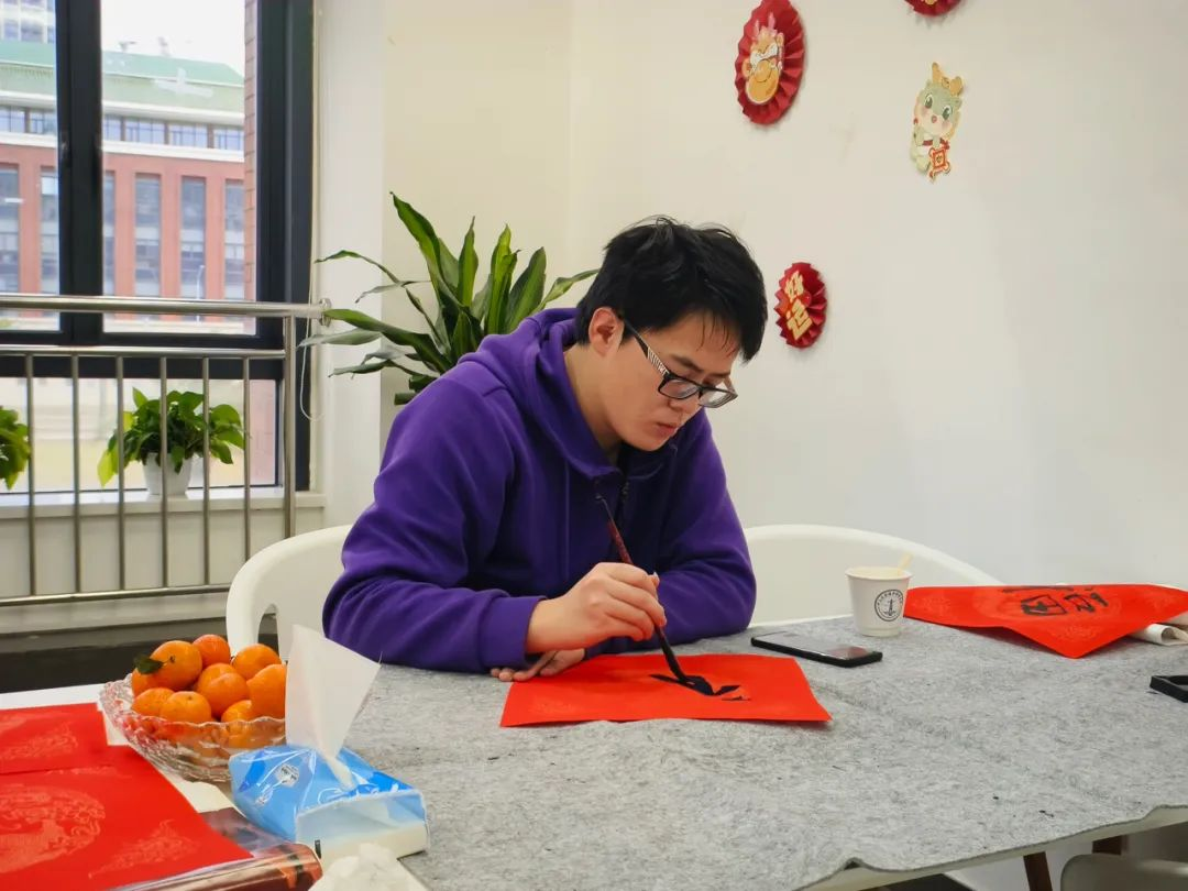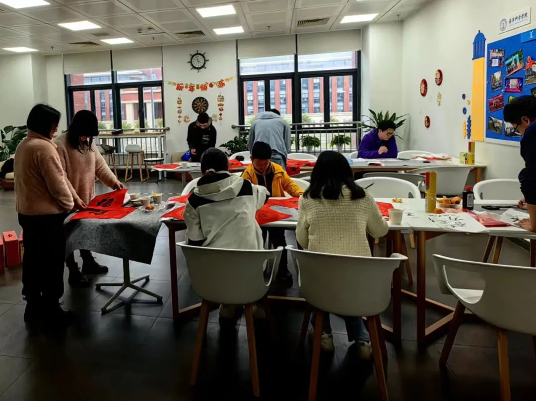 红纸翻飞、墨韵飘香,师生们写着各具风格的“福”字和寄托美好祝愿的对联,笔墨之下,是辞旧迎新的美好愿景。