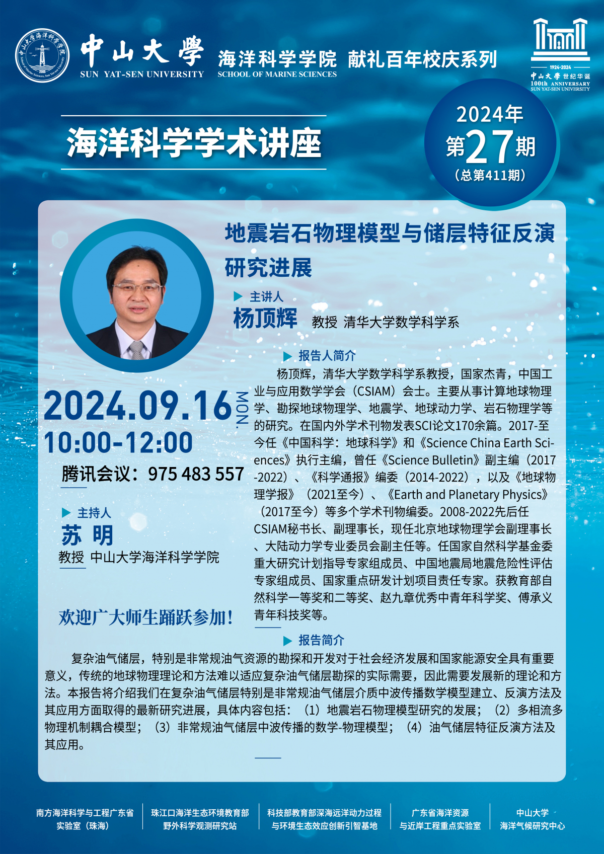 海洋科学学术讲座预告第411期:地震岩石物理模型与储层特征反演研究进展