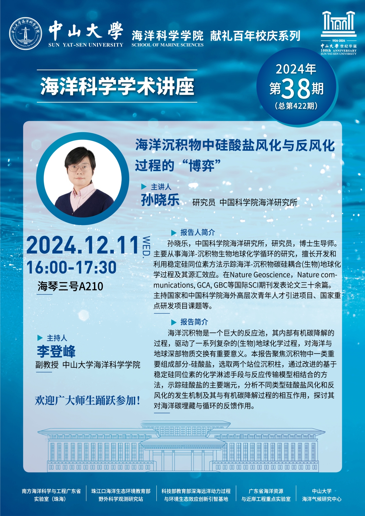 海洋科学学术讲座预告第422期:海洋沉积物中硅酸盐风化与反风化过程的“博弈”