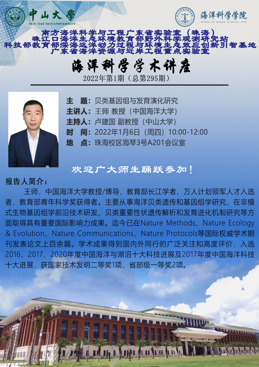 海洋科学学术讲座预告第295期:贝类基因组与发育演化研究