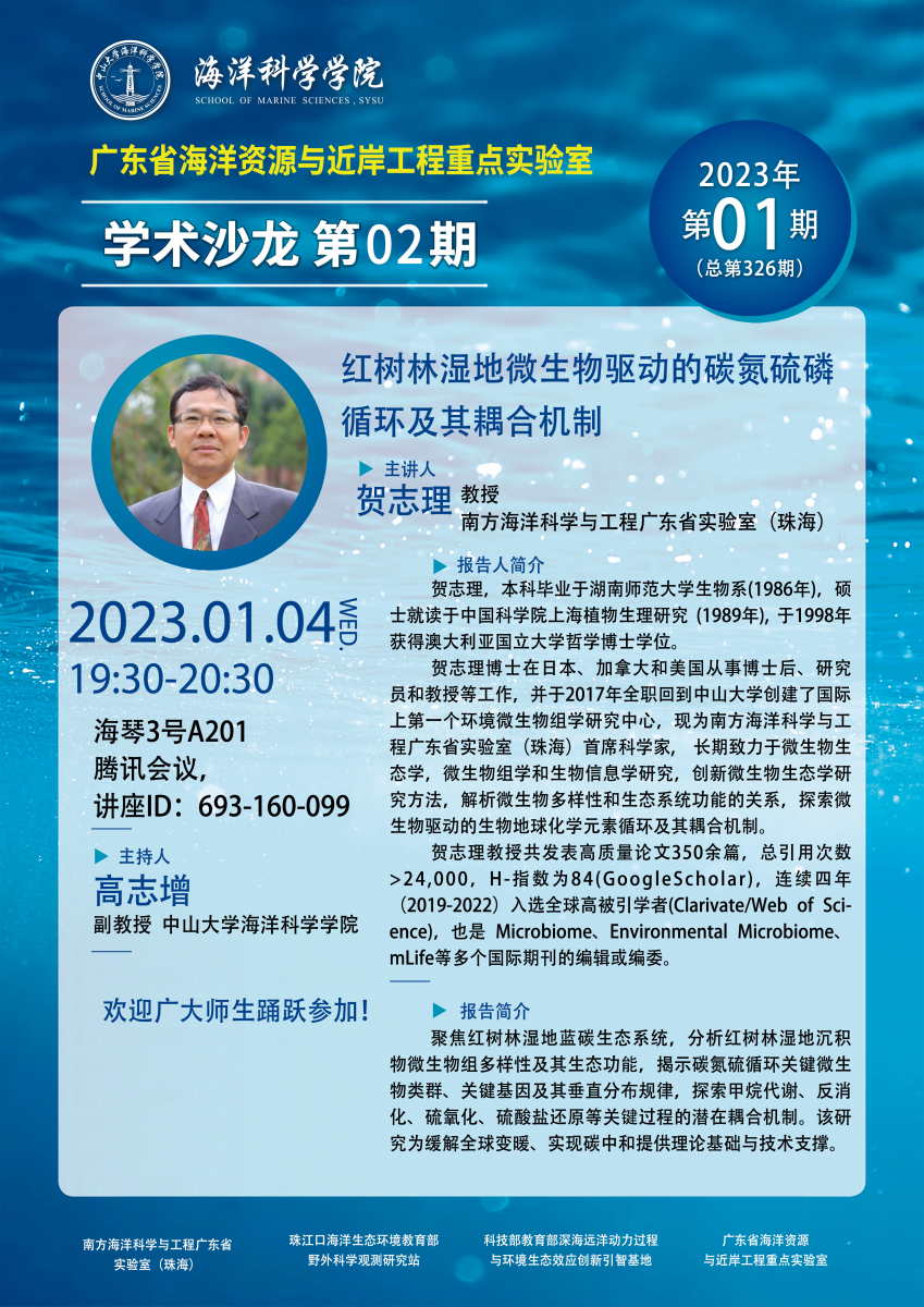 海洋科学学术讲座预告第326期:红树林湿地微生物驱动的碳氮硫磷循环及其耦合机制